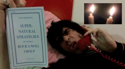 i picked up another book this week that summons the B/black arts: Ian Svenonius’s Super-Natural Strategies for making a Rock ‘n’ Roll Group. Svenonius, of Nation of Ulysses, the Make-Up, and most recently, Chain in the Gang, here follows psychedelia back into the occult, claiming to have only been able to demystify the sleight of hand required to make a truly epic rock group by conducting seances with deceased rock ‘n’ roll heroes: “They [living rockstars] don’t want us at their party. We were therefore compelled to seek the advice of the dead–rock ‘n’ roll stars no longer contaminated by the stultifying climate of competitive capitalism” (18).